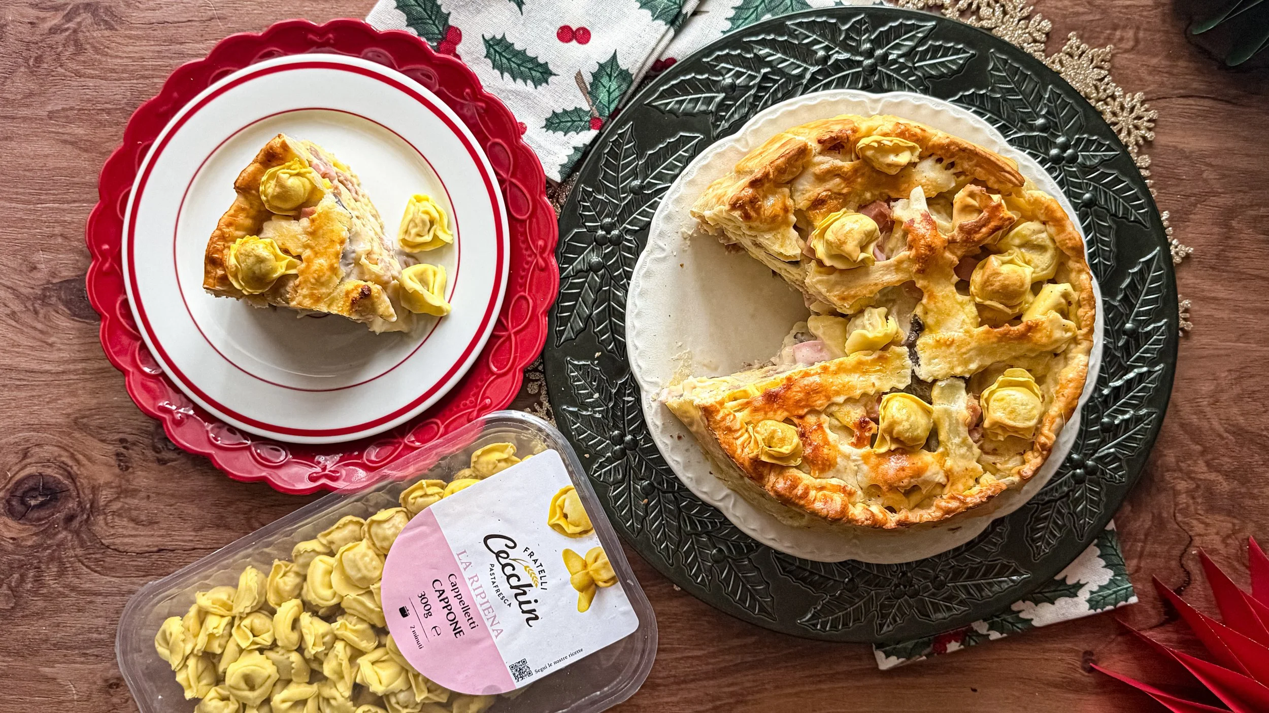 Una crosta dorata che custodisce un cuore morbido e profumato: questo timballo di cappelletti al cappone è pensato per le tavole che amano prendersi il tempo delle feste e rendere speciale ogni portata.